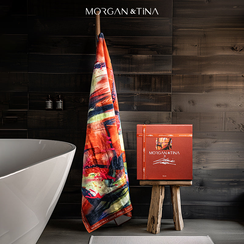 Morgan&Tina teamed up with artist Mr. Ludovic Lasson, former Chief Product Development Director and Art Creative Director of LVMH cosmetics brand Make Up Forever. By combining his exploratory oil painting "Disharmony and Integration" with Morgan&Tina bath towel, Morgan & Tina once again elevates the brand concept of integrating art into life.