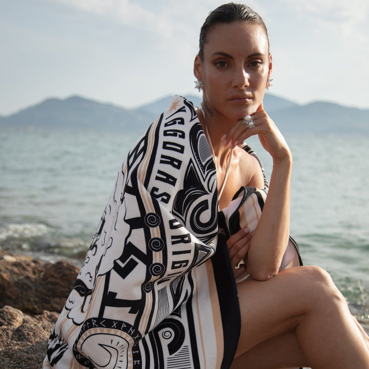 This MORGAN & TINA Artistic Pajama Set is made from the most luxurious high-weight 100% 25-momme silk. Soft, high-weight airy silk is printed with the original painting of Yggdrasil of Norse mythology, the world tree around which exists all else including the nine worlds.